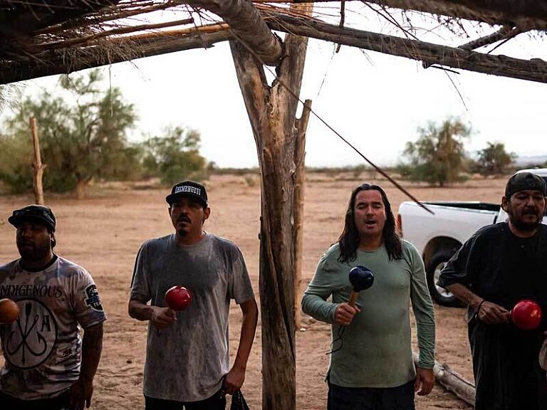 Как управляющий фермой племени Чемеуэви, Даниэль Лейвас контролирует устойчивую посадку и сбор органических фруктов — от дынь до гранатов — церемониальных тыкв и различных видов тенистых деревьев, которые предоставляют места для уединения и встреч для сообщества. Он также управляет фермой Чемеуэви сельскохозяйственная программа водозабора, которая постоянно берет намного меньше выделенного правительством племени годового лимита из озера Хавасу, которое было создано в 1938 году, когда завершение строительства плотины Паркер привело к затоплению долины реки Колорадо. Дэниел живет со своей семьей на ферме Чемеуэви, а не вдали от своего отца, Мэтью Лейваса-старшего. Уважаемый Хранитель Соляной Песни, он и его семья активно занимаются сохранением священных мест и борются с проектами по добыче полезных ископаемых по всему Мохаве.